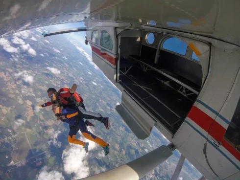 Vous êtes filmé par une caméra embarquée sur le bras du porteur tandem et par un vidéo man qui vous suit pendant la chute. Le monteur effectue le montage en multi caméra et en plus toutes les photos et la photo de sortie d’avion vous sont transmises par mail ensuite.